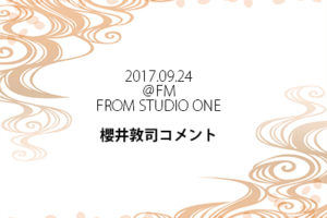アットエフエム、フロムストゥーディオワンをお聴きのみなさん、バクチクのボーカル櫻井です。 今日の番組、僕たちバクチクスペシャルと言うことで、30周年、今年は迎えております。 9月20日にデビュー30周年を記念したベストア…